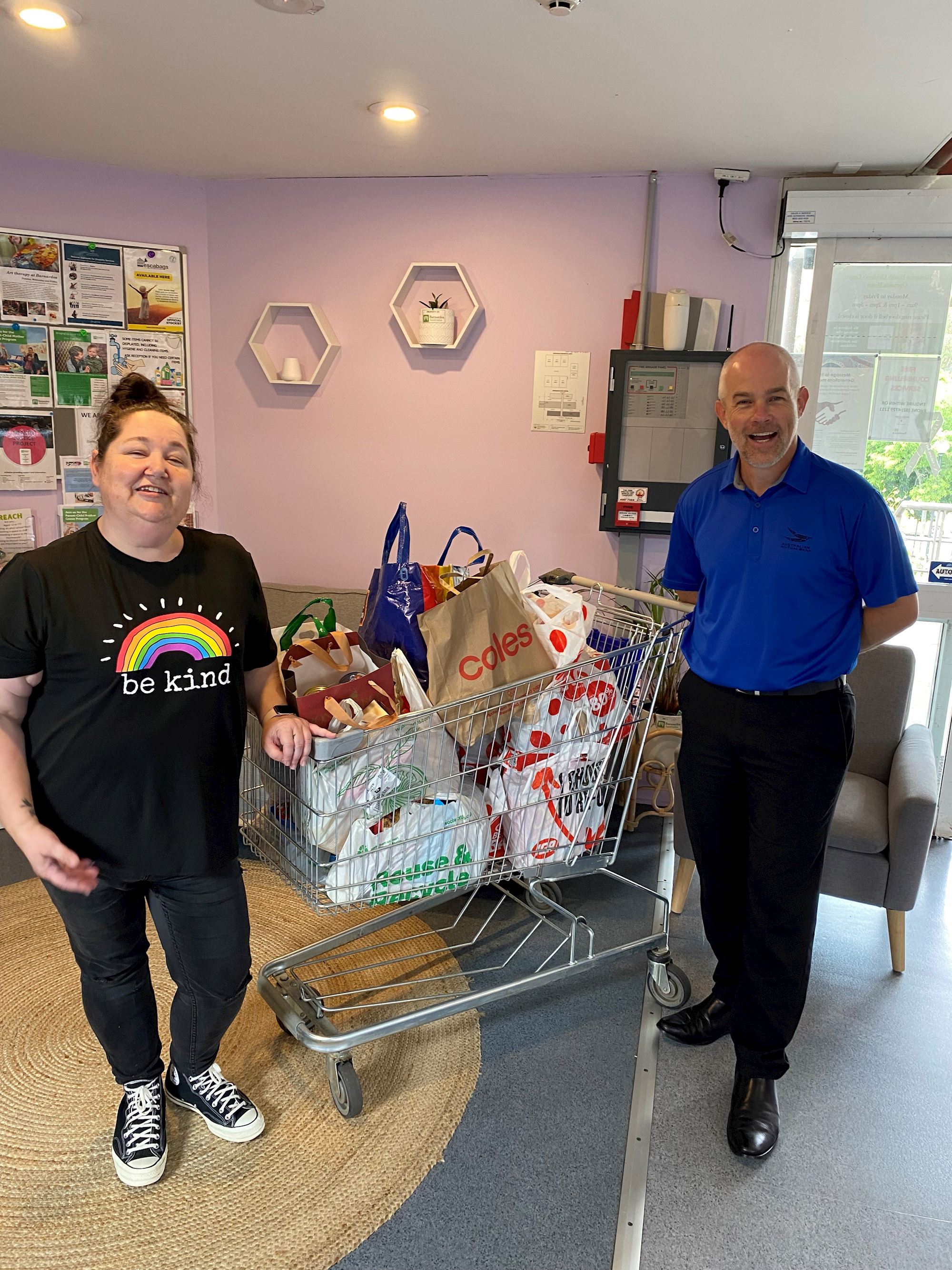 Australian Mutual Bank has donated its first trolleys-worth of goods to Barnardos Australia, to help them with their vital work in supporting families in crisis.