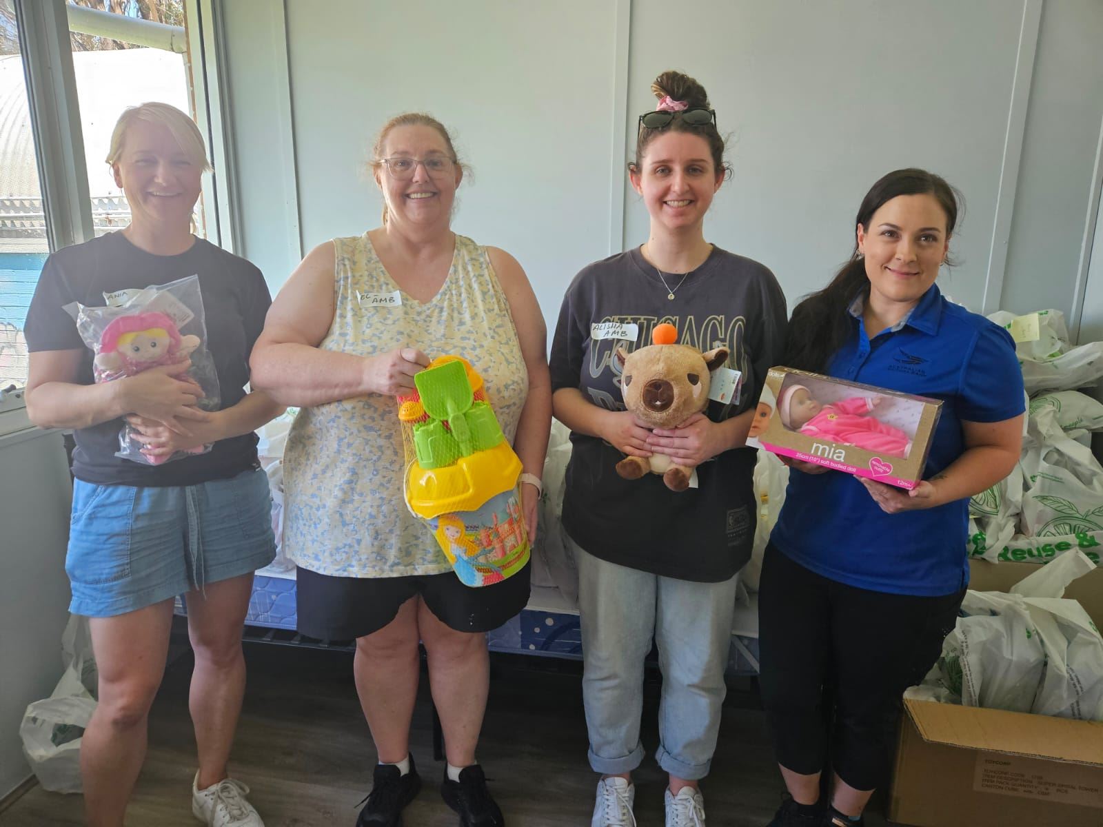 The Barnardos Children’s Family Centre in Penrith offers family support, out-of-home care and supported accommodation services for children, adolescents and their families. It is a vital service that helps keep families together when experiencing challenges and difficulties. As our team of volunteers arrived at the Centre, they were embraced by Barnardos staff who were thankful for the support and additional help to see these gifts prepared in time for Christmas.
